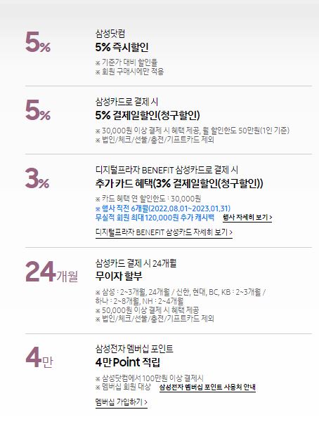 삼성닷컴 구매할인 + 삼성카드 할인 + BENEFIT 카드할인 + 4만 포인트까지!