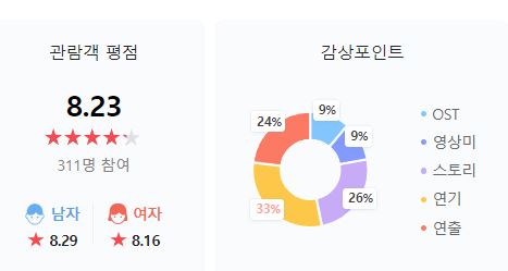 한국 국내 관람객 평점은 좋은 평가를 기록했다. 특히 감상 포인트 중 연기의 비중이 33%나 차지하는 것을 보니 다시 한번 배우들에게 박수를 보내게 된다. 현실에서도 생길만한 이야기라고 생각했다. 지구 멸망이라는 엄청난 사실을 알리려는 케이트와 민디의 세상을 구하고자 하는 노력에도 불구하고 각자의 이익만을 추구하는 매스미디어와 정치인들. 우매한 리더의 모습까지 환상의 콜라보를 이루어 내고 있다. 그리고 현실에서도 있을만한 인물들을 담아냈다. 자신의 재산과 기술로 무엇이든 해결할 수 있다는 오만한 기업가, 과거의 영광에 취해 국가를 위해 희생하려는 꽉 막힌 퇴역군인, 무조건 '음모론'을 펼치는 <돈 룩업> 시위파. 영화를 보다 보면 우리가 살고 있는 현대사회에서도 정말 '볼 수 있을 것 같은' 혹은 정말 '보았던' 인물과 단체를 적재적소에 담아냈다고 생각이 들게 된다. 풍자에 일가견이 있는 맥케이 감독은 사회, 정치, 대중문화, 미디어를 여과 없이 풍자하며 제대로 된 블랙코미디 영화를 만들어 냈다. 안타깝게도 세상을 팬데믹 사태로 만든 '코로나-19'를 생각하며 영화를 보면 영화와 크게 다를 바 없는 것 같은 현실에 쓴웃음이 나오기도 한다. "현실은 영화를 뛰어넘는다"라는 국내 감상평이 기억에 남는다. 영화 포스터에도 쓰여있는 듯이 정말 "실화가 될지도 모르는 이야기"이다. 이 영화를 많은 사람들이 보았으면 하는 마음으로 적극 추천하는 영화[돈 룩업]이다.